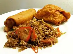 Uno de los platos más representativos del país es el gallo pinto, conocido simplemente como pinto, patrulla o burra, en algunos pueblos sureños. Su origen se remonta a la época colonial y se le considera un plato mestizo que tiene una fuerte influencia africana, formando parte de las muchas recetas americanas hechas a base de arroz y frijoles.[62]​ Además de estos dos granos básicos, se le agregan diversos condimentos, entre los que se pueden citar cebolla, chile dulce y culantro. Posee variantes según la región: más grasoso y tostado en Guanacaste; y más húmedo en el Valle Central. En la provincia de Limón, preparado con frijoles rojos, leche de coco y chile panameño, recibe el nombre de rice and beans.[62]