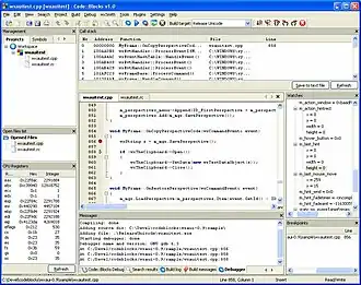 Code::Blocks es un entorno de desarrollo integrado de código abierto, que soporta múltiples compiladores, que incluye GCC, Clang y Visual C++. Se desarrolló en C++ usando wxWidgets como el kit de herramientas GUI. Utilizando una arquitectura de complemento, sus capacidades y características están definidas por los complementos proporcionados. A la fecha octubre de 2017, Code::Blocks está orientado hacia C, C++ y Fortran. Tiene un sistema de compilación personalizado y un soporte de construcción opcional.