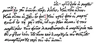 En 1 Juan 5:6 tiene la variante textual δι' ὕδατος καὶ αἵματος καὶ πνεύματος ἁγίου (a través del agua y de la sangre y el Espíritu Santo) junto con los manuscritos: 39, 326, 1837.[8]​ Bart Ehrman identificó esta lectura como una corrupción ortodoxa del texto.[9]