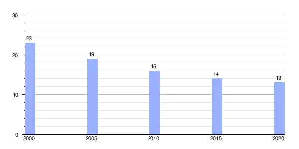 | Gráfica de evolución demográfica de Coence (aldea) entre 2000 y 2020 |