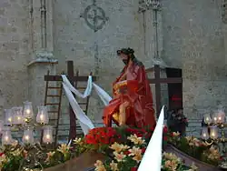 • Nuestra Señora del Dolor: Es una talla del siglo XIX de vestir cubierta por un vestido negro bordado en oro y un velo de las mismas características. Su rostro está idealizado y en la mano lleva un rosario y la corona de espinas de Jesús.