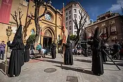 | Túnica | Rojo corinto en la procesión del Sábado de Pasión, y negro en la de Sábado Santo. | |