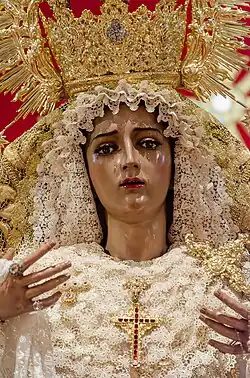 Es una imagen tallada en madera de cedro de estilo neobarroco sevillano, al igual que las imágenes del paso de misterio, obra de Antonio J. Dubé de Luque.[3]