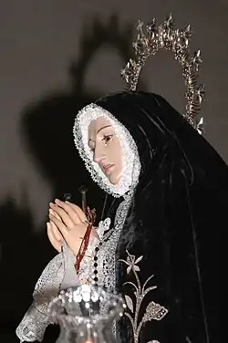 Entre ellas están las Camareras de la Virgen, encargadas de vestir a la Imagen con el hábito y el manto con el que participará en los desfiles, depositando entre sus manos la corona de espinos, los tres clavos de Cristo y un pañuelo con el que secar sus lágrimas, que con muchísimo cariño y devoción ellas han confeccionado Tras la jubilación del cura párroco D. Miguel Llorca, se terminó la limitación a la mujer, dándoles la libertad de elegir la Cofradía con la que deseaban procesionar y mostrar su Fe.