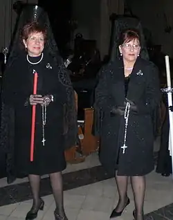 Desde que en 2004 la Cofradía se convirtiera en una asociación pública de fieles constituida en la diócesis de Orihuela-Alicante, y se aceptaran los estatutos, la sección masculina y femenina se funde en una sola, dejando en las mujeres, la decisión de participar en los desfiles con traje de capucho o traje de riguroso luto y mantilla.