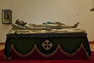 Santísimo Cristo Yacente (Gregorio Fernández, obra de taller, h. 1631-1636). Propiedad del Monasterio, que lo exhibe en su Museo, del cual es una de sus obras más destacadas. García Chico considera probable que formara parte del retablo de la Cartuja de Aniago, que realizó Gregorio Fernández en 1634 junto al ensamblador Melchor de Beya y los pintores Tomás de Meñasco y José Ángulo. Se dice que fue una donación de Felipe III a las Madres Bernardas del Monasterio, de las cuales era protector.