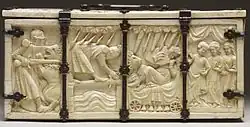 Además hay fragmentos de un cofre desmantelado, conocido por un grabado del siglo XVIII, cuya ubicación se desconoce, salvo el panel posterior que se encuentra en el Museo Metropolitano de Arte (2003.131.2):