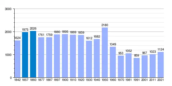 | Gráfica de evolución demográfica de Cofrentes[3] entre 1842 y 2021 |