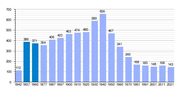 La población sufrió un descenso importante debido al éxodo rural ocurrido en la segunda mitad del siglo XX, aunque afortunadamente esta tendencia parece haberse estancado debido principalmente al crecimiento de la industria de los pueblos de la comarca, el aumento de la calidad de vida y, como consecuencia, el descenso de la mortalidad y el bajo coste del suelo edificable.