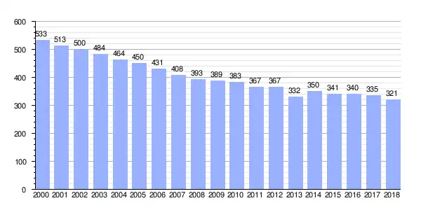 | Gráfica de evolución demográfica de Colúns[2] entre 2000 y 2018 |
