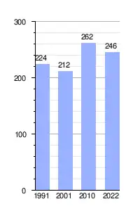 El censo 2022 arrojó 136 viviendas con una población estable de 246 habitantes en la comisión de fomento.[2] Además, el censo dio a conocer datos de su composición poblacional (109 hombres 118 mujeres), población urbana sin población rural dispersa o localidades dispersas en el municipio (227) densidad y área urbana.[3]