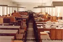 Después de que la Alte Akademie quedara destruida, la Colección Estatal Zoológica se movió provisionalmente al edificio del Museo de Caza, que por entonces se planeaba construir en el Castillo de Nymphenburg (este museo se llama ahora Deutsches Jagd- und Fischereimuseum, y está situado en la carretera Neuhauser). El Zoológico Estatal de Múnich se alojó provisionalmente en un ala lateral del Palacio de Nymphenburg de 1946 a 1985.