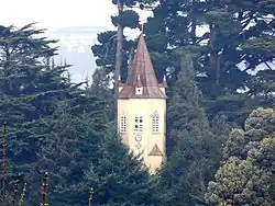 Por los mismos años, en 1890, comenzó la construcción de la torre del campanario al que en 1905 se le agregó un reloj que aún funciona. Las cuatro campanas —construidas en Austria; la mayor, llamada San José, pesa 1750 kilos— fueron instaladas en 1894.[5] El campanario, ubicado en un cerro que quedó encapsulado dentro de la propiedad del colegio, se convirtió un referente de la ciudad por las próximas décadas. En 1997 fue declarado Monumento Nacional.