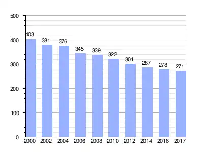 Población de derecho (2000-2010) según los censos de población del INE a 1 de enero de cada año.[9] |