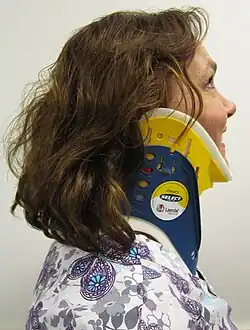 Un collarín cervical o cuello ortopédico es un dispositivo médico que se usa para sostener el cuello de una persona. También lo aplica el personal de emergencia a quienes han sufrido lesiones traumáticas en la cabeza o el cuello,[1] y puede utilizarse para tratar afecciones médicas crónicas.