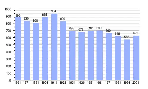 | Gráfica de evolución demográfica de Colleretto Giacosa entre 1861 y 2001 |