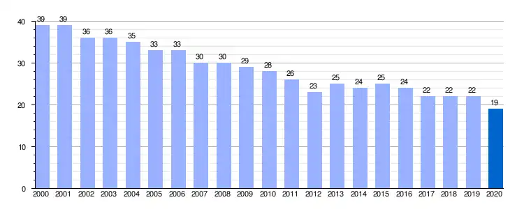 | Gráfica de evolución demográfica de Colmenares de Ojeda entre 2000 y 2020 |