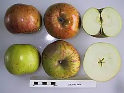 ![]() La variedad de manzana 'Colonel Yate' con secciones cruzadas. | ||