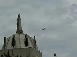 Cúpula de la Iglesia del Purísimo Corazón de María rematada por una estatua de la Virgen María con los brazos semiabiertos.[17]