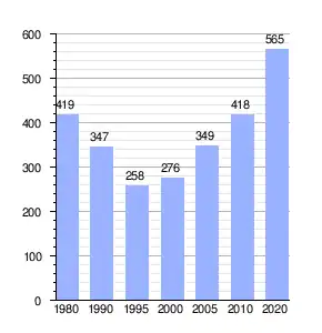 Población de los censos y conteos del Instituto Nacional de Estadística y Geografía (INEGI).[7] |