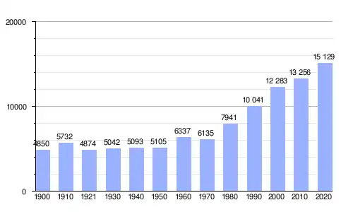 | Gráfica de evolución demográfica de Colotlán entre 1900 y 2020 |