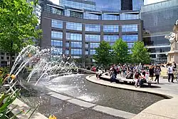 Time Warner Center, la sede del conglomerado de medios de comunicación Time Warner, se encuentra en la parte oeste de Columbus Circle, en el emplazamiento del antiguo New York Coliseum. En la parte norte de Columbus Circle se encuentra el Trump International Hotel and Tower, y en la parte noreste el Merchant's Gate to Central Park.