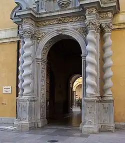 Columnas Salomónicas en la fachada barroca de la Basílica y convento de Nuestra Señora de la Merced (Lima), siglo XVII -