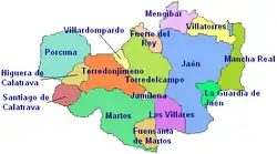 Así pues la actual comarca metropolitana de Jaén está formada por las siguientes localidades: