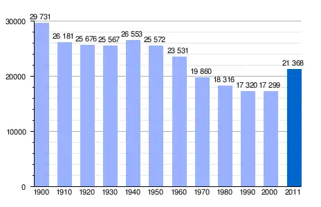 Población de derecho (1900-1991) o población residente (2001) según los censos de población del INE. Población según el padrón municipal de 2011 del INE. |