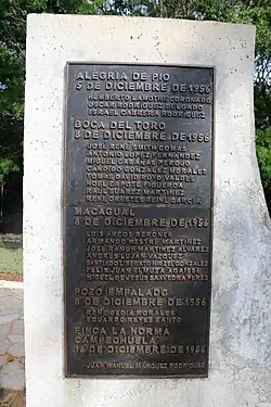 ![]() Monumento localizado en el Parque nacional Desembarco del Granma, en honor a los caídos en combate | ||||