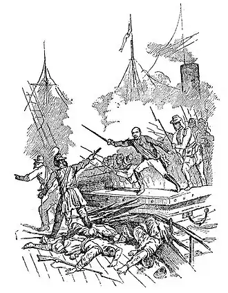 ![]() "Vie Illustrée de García Moreno" publicado en Francia por Charles D`Hallencourtm en 1887 conmemorando el Combate naval de Jambelí de 1865. | ||||