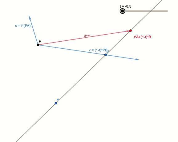 Por tanto, la definición de combinación afín de puntos no depende del punto auxiliar elegido para calcularla. |