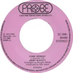 - ↑ «Come Monday by Jimmy Buffett (US single release)». 45cat (en inglés). Consultado el 2 de agosto de 2024.