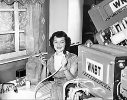 Fotografia tomada en el "detrás de escena" de una grabación para un comercial televisivo, 1948.