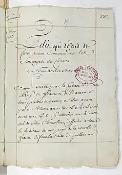 Champlain reformó el negocio del comercio, creando el primer trust informal en 1613 en respuesta a las crecientes pérdidas debidas a la competencia.[4] El trust se formalizó más tarde con una carta real, que dio lugar a una serie de monopolios comerciales durante el mandato de Nueva Francia. El monopolio más notable fue la Compañía de la Nueva Francia, con concesiones ocasionales, como para los habitantes de las décadas de 1640 y 1650, lo que les permitió comerciar de forma limitada. Si bien los monopolios dominaban el comercio, sus licencias también requerían el pago de los rendimientos anuales al gobierno nacional, los gastos militares y las expectativas de que alentarían la colonización de la escasamente poblada Nueva Francia.[5]
