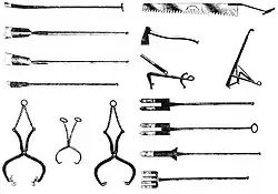 El proceso requería una serie de equipos. Algunos de ellos eran equipos de protección para que la mano de obra y los caballos pudieran trabajar con seguridad sobre el hielo, como zapatos de corcho para los hombres y herraduras con púas para los caballos.[153] A principios del siglo XIX sólo se utilizaban herramientas improvisadas, como picos y cinceles, para el resto de la recolección, pero en la década de 1840 Wyeth introdujo varios diseños nuevos para permitir un proceso de recolección a mayor escala y más comercial.[163] Entre ellas figuraba una cortadora de hielo tirada por caballos, parecida a un arado con dos cuchillas paralelas para ayudar a marcar el hielo de forma rápida y uniforme, y más tarde un arado tirado por caballos con dientes para ayudar en el propio proceso de corte, que sustituía al serrucho.[164] En la década de 1850, los fabricantes especializados en herramientas para el hielo elaboraban catálogos y vendían productos a lo largo de la costa este.[165] Durante gran parte del siglo XIX se discutió la conveniencia de una sierra de corte circular, pero resultó poco práctico accionarlas con caballos y no se introdujeron en la cosecha de hielo hasta principios del siglo XX, cuando se dispuso de motores de gasolina.[141]