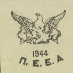 - ↑ Ο ΑΠΕΛΕΥΘΕΡΩΤΗΣ. ΟΡΓΑΝΟ ΤΟΥ Ε. Α. Μ. ΤΗΣ ΑΘΗΝΑΣ – ΠΕΙΡΑΙΑ (ΑΝΤΙΠΡΟΣΩΠΕΙΑ ΤΗΣ Κ. Ε.). April 19, 1944.