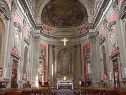 El altar mayor es de Zanobi del Rosso, mientras que los dos altares laterales son de Antonio Montauti. En el centro del techo a casetones está el lienzo de Giovanni Camillo Sagrestani que representa la Gloria de san Felipe Neri (1715). En la semicúpula del ábside está el gran fresco de Niccolò Lapi que muestra la Santísima Trinidad con apóstoles y santos florentinos. En la capilla del Sacramento (de Zanobi del Rosso, que data de 1776) se encuentra la tumba de Pietro Bini, el sacerdote florentino que instituyó la congregación florentina de los filipenses. En el altar hay una Virgen de Carlo Maratta y una tabla atribuida a Giovanni Stradano; y en la cúpola, frescos de Luigi Sabatelli e hijos.