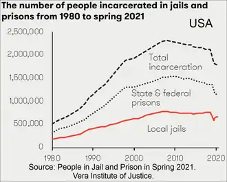 - ↑ Kang-Brown, Jacob; Montagnet, Chase; Heiss, Jasmine (2021). People in Jail and Prison in Spring 2021. Nueva York: Vera Institute of Justice.