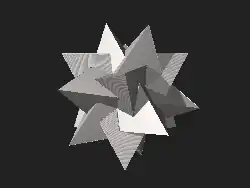 | Icosaedro (convexo) | Pequeño icosaedro triámbico | Mediano icosaedro triámbico | Gran icosaedro triámbico | Compuesto de cinco octaedros | Compuesto de diez tetraedros | Gran icosaedro | Dodecaedro excavado | Estelación final | |