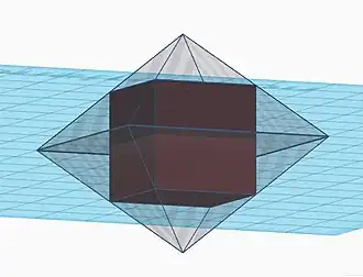 Este compuesto se puede construir superponiendo tres cubos idénticos y luego rotando cada uno 45 grados alrededor de un eje distinto (que pasa por los centros de dos caras opuestas).[3]