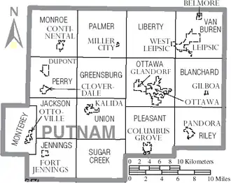 - Esta obra contiene una traducción derivada de «Putnam County, Ohio» de Wikipedia en inglés, publicada por sus editores bajo la Licencia de documentación libre de GNU y la Licencia Creative Commons Atribución-CompartirIgual 4.0 Internacional.