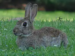 El conejo común o conejo europeo (Oryctolagus cuniculus) es una especie de mamífero lagomorfo de la familia Leporidae, y el único miembro actual del género Oryctolagus. Mide hasta 50 cm y su masa puede ser hasta 2.5 kg. Ha sido introducido en varios continentes y es la especie que se utiliza en la cocina y en la cunicultura. Está incluido en la lista 100 de las especies exóticas invasoras más dañinas del mundo[3] de la Unión Internacional para la Conservación de la Naturaleza. Su introducción en Australia es uno de los capítulos más importantes del deterioro causado por especies exóticas invasoras.