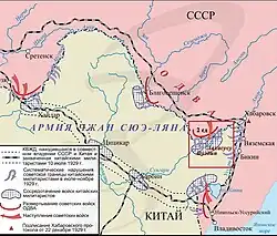 Mientras las negociaciones entre ambas partes seguían desarrollándose, a finales de verano estalló el conflicto armado entre ambas partes. El 9 de septiembre la aviación soviética bombardeó y destruyó la estación ferroviaria de Suifenhe, provocando un importante número de bajas. A lo largo de las siguientes semanas los aviones soviéticos desarrollaron una intensa campaña aérea contra objetivos estratégicos en el noreste de Manchuria. A mediados de noviembre la línea ferroviaria entre Tsagan y Chalainor había sido intensamente bombardeada, provocando el corte de las comunicaciones. Para esa fecha los chinos ya habían tenido unas bajas de dos mil muertos.[5]​ Por su parte, las negociaciones continuaron, pero fueron ralentizadas considerablemente por la actitud china hacia la propuesta soviética. Finalmente, el 22 de diciembre los representantes de la URSS y el general Zhang firmaron en la ciudad soviética de Jabárovsk un acuerdo que puso fin a las hostilidades.[5]