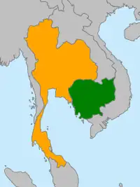 ![]() Línea de los enfrentamientos antes entre Camboya y Tailandia, Tailandia en Naranja y Camboya en Verde. | ||||
