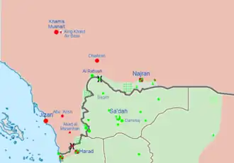 - ↑ Piggott, Mark (5 de mayo de 2015). «Saudi Arabia: Houthi shelling in town of Najran results in casualties and closure of airport». Consultado el 9 de octubre de 2016.