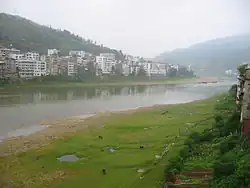 Al río que baña y divide la ciudad en norte-sur se llama Duliu (都柳江), de ahí el nombre Xiajiang (下江) "río abajo".