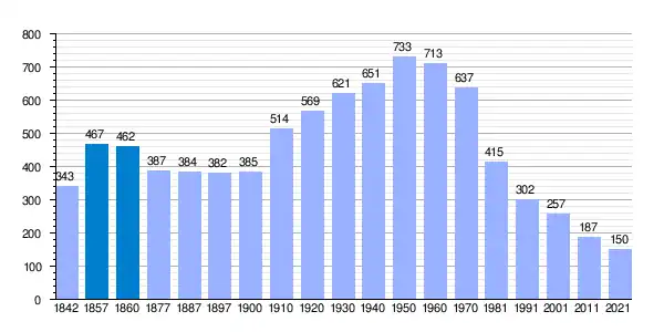 En 1874, contaba con 476 habitantes, 92 casas y 7 molinos.
