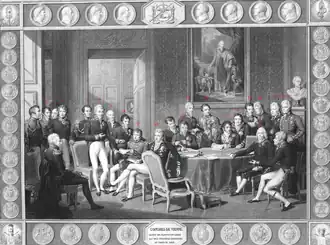 El Congreso de Viena fue un encuentro internacional celebrado en la capital del Imperio Austríaco, entre el 18 de septiembre de 1814 y el 9 de junio de 1815, convocado con el objetivo de restablecer las fronteras de Europa tras la derrota de Napoleón Bonaparte y reorganizar las ideologías políticas del Antiguo Régimen.
