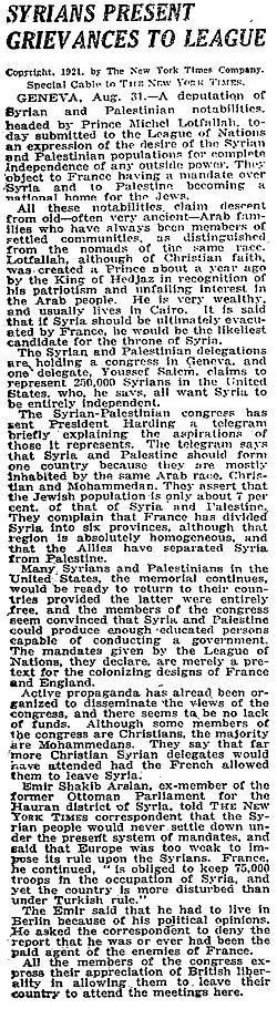- Congrès Syrio-Palestinien: (Genève 25 août - 21 sept. 1921): Appel adressé à la 2me Assemblée générale de la Société des Naciones